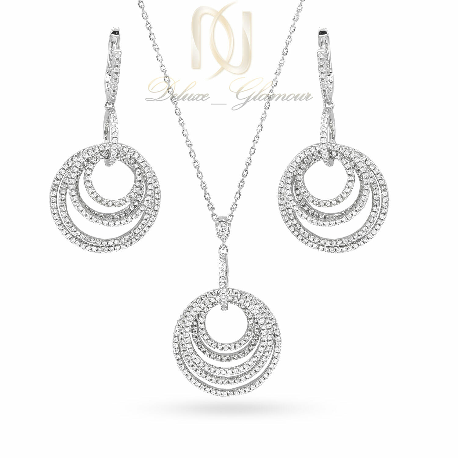 نیم ست زنانه نقره 925 اصل طرح طلا سفید ce-n44 دارای آبکاری با کیفیت رودیوم است که باعث می شود رنگ نیم ست کاملا مشابه طلا سفید گردد و در برخورد با پوست بدن ایجاد حساسیت نکند. این نیم ست شیک دارای نگین کاری درخشان و زیبایی نیز است که از نوع زیرکونیا است که بدون ریزش هستند. طول پلاک این نیم ست زیبا 3.5 سانتی متر است که قطر پلاک 2.5 سانتی متر است که زنجیر 45 سانتی متری بر روی آن قرار گرفته است. گوشواره های این نیم ست نیز به صورت آویزی است که طول آنها 4.5 سانتی متر با احتساب قفل امگا می باشد.