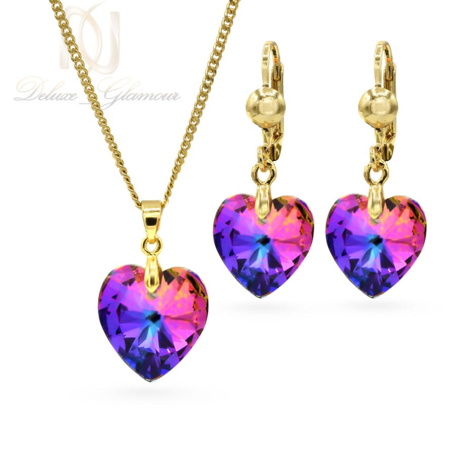 نیم ست زنانه نگین سواروسکی طرح قلب استیل ce-n71 یک طرح چشم نواز و درخشان برای علاقمندان به زیورآلات نگین سواروسکی است که از گوشواره و گردنبند تشکیل شده است. این نیم ست زیبا به صورت طرح قلب است و در ساخت آن از استیل ضد زنگ استفاده شده است که بر روی آن روکش آب طلای 18 عیار قرار گرفته شده است از همین رو از ثبات رنگ بالای برخوردار است.