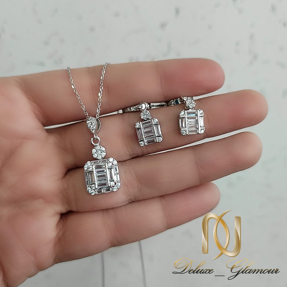 این نیم ست از دو گوشواره با قفل امگا و یک پلاک با آویز تشکیل شده و رنگ نگین های سفید آن با بیشتر استایل های رنگی هم خوانی دارد. طراحی این مدل، آن را برای کسانی که به دنبال زیورآلات سبک و قابل استفاده در موقعیت های مختلف هستند، به گزینه ای مناسب تبدیل کرده است.