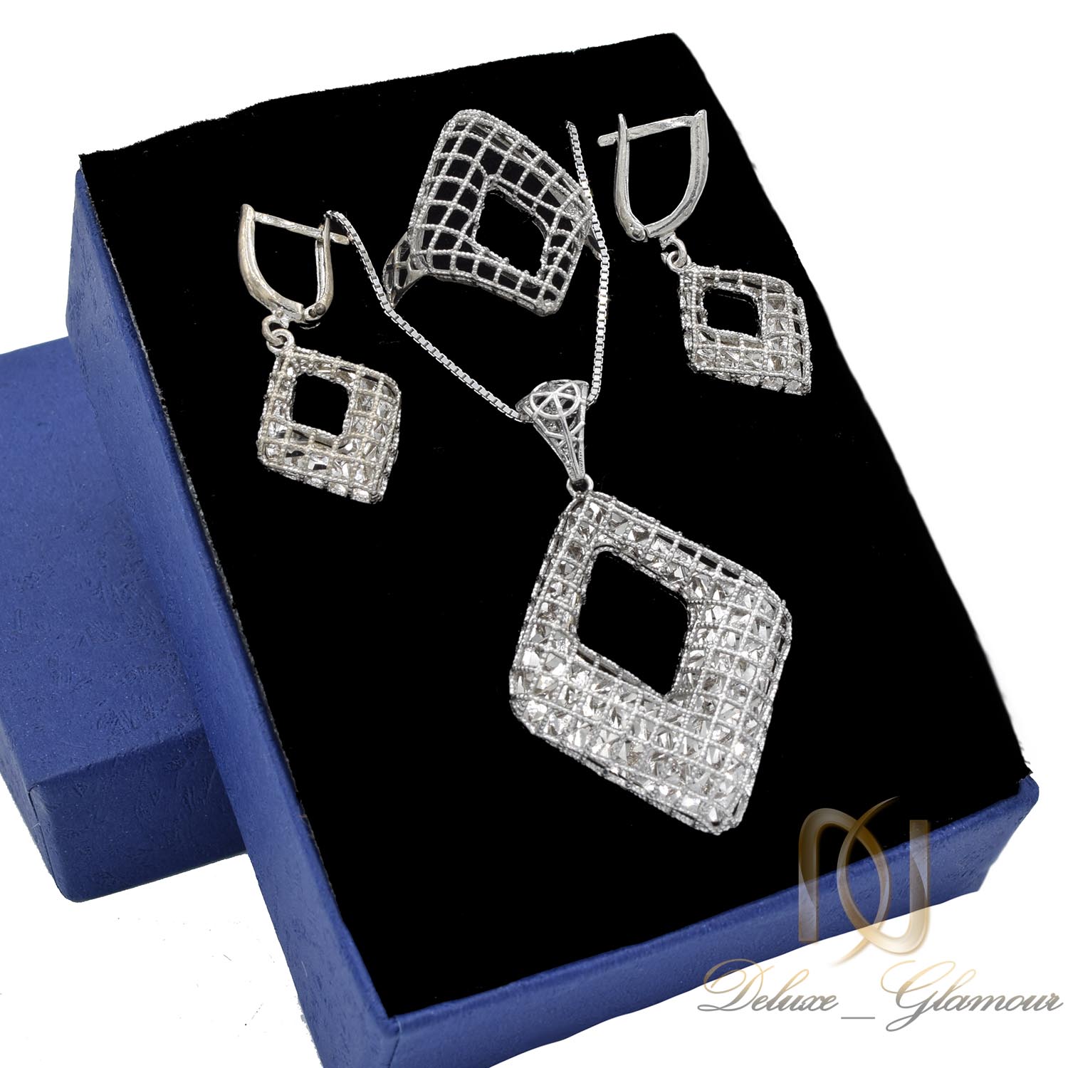 نیم ست نقره زنانه توری لوزی ns-n469 از سری زیورآلات زنانه و طرح طلا سفید می باشد که از گوشواره، گردنبند و انگشتر تشکیل شده است. این نیم ست زیبا به صورت توری می باشد و در ساخت ان از نگین استفاده نشده است. این نیم ست زنانه زیبا از جنس فلز نقره با عیار 925 ساخته شده است و جزو نیم ست های زنانه بادوام می باشد که بدون تغییر رنگ است.