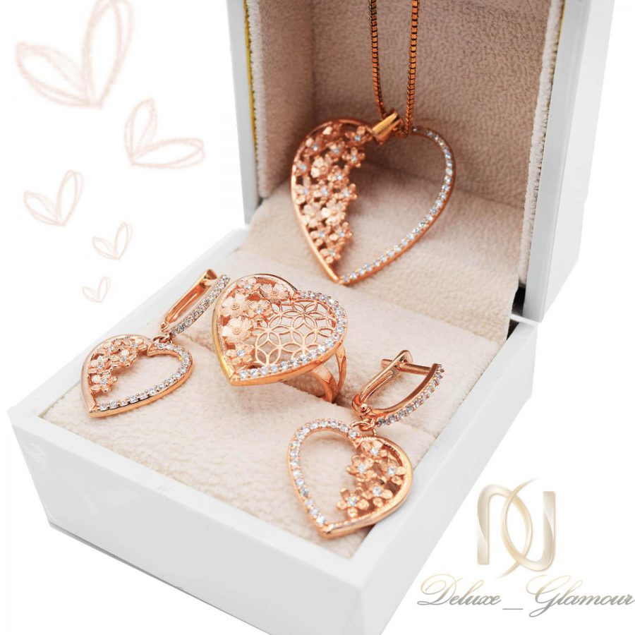 نیم ست نقره زنانه طرح قلب و شکوفه رزگلد ns-n465 از سری نیم ست های زنانه می باشد که از انگشتر، گردنبند و گوشواره تشکیل شده است. این نیم ست زنانه شیک از جنس نقره عیار 925 می باشد که بر روی آن نیز از آبکاری درجه یک رزگلد استفاده شده است که رنگی خاص و مورد پسند در بخش زیورالات است. نیم ست زنانه ns-n465 به دلیل کیفیت بالای نقره به کار رفته در ساخت آن و دارا بودن آبکاری درجه از ثبات رنگ بالایی برخوردار است و جزو زیورآلات فوق العاده با کیفیت محسوب می شود.