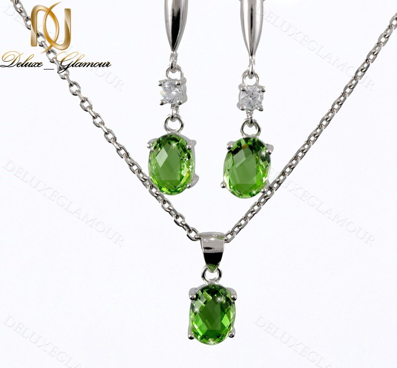 نیم ست نقره زنانه با کریستال سواروسکی سبز Ns-n201 یک اکسسوری بسیار خاص و لوکس با طراحی ظریف و زیبا می باشد. کریستالهای سه بعدی زیبای سواروسکی با رنگ سبز روشن و طرح بیضی شکل جلوه ای خاص به این نیم ست بخشیده اند.
