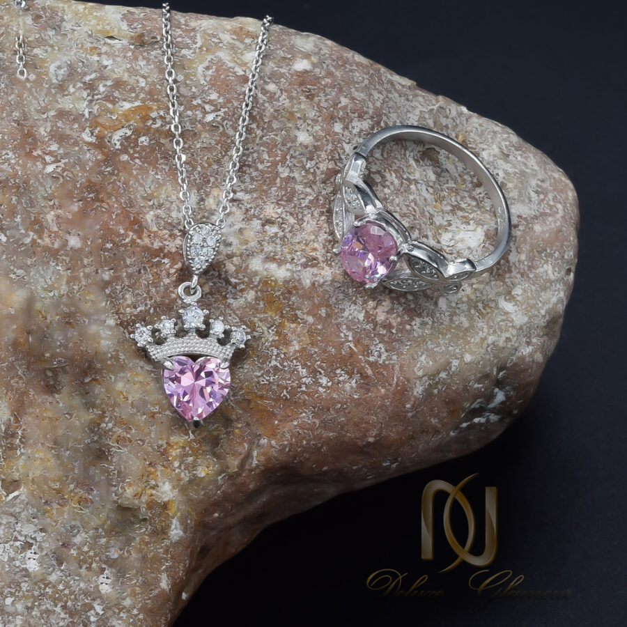نیم ست نقره 925 دخترانه جواهری نگین صورتی ce-n87 از سری ست های دو تکه دخترانه می باشد که از گردنبند و انگشتر تشکیل شده است. این ست زیبا از نقره عیار 925 درجه یک ساخته شده است که با استفاده از رودیوم به صورت چندلایه آبکاری شده است تا کاملا همرنگ طلا شود. از لحاظ سازگاری با پوست نیز رودیوم به هیچ وجه بر روی پوست ایجاد حساسیت و اگزما نمی کند.