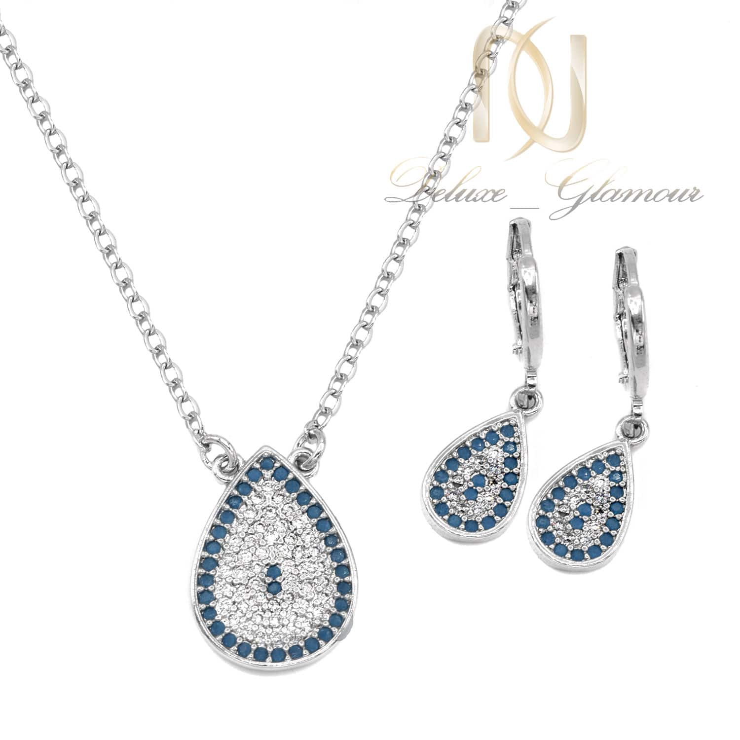 نیم ست استیل دخترانه طرح اشک ns-n181 دارای گوشواره های آویز یک سانتی متری است که قفل آن از نوع اهرمی است . بر روی گوشواره ها و پلاک دو سری نگین به کار رفته اند که نگین های فیروزه ای رنگ از نوع لاکی می باشند و نگین های کریستالی سفید از نوع زیرکونیا می باشند و به صورت باگت و بدون ریزش هستند. این نیم ست هدیه ای مناسب برای خواهر ، دوست، نامزد،دوست و…. در مناسبت های مختلف است و با توجه به زیبایی و کیفیت منحصر به فرد آن می تواند همواره جزو اولویت های خرید نیم ست فانتزی دخترانه باشد.