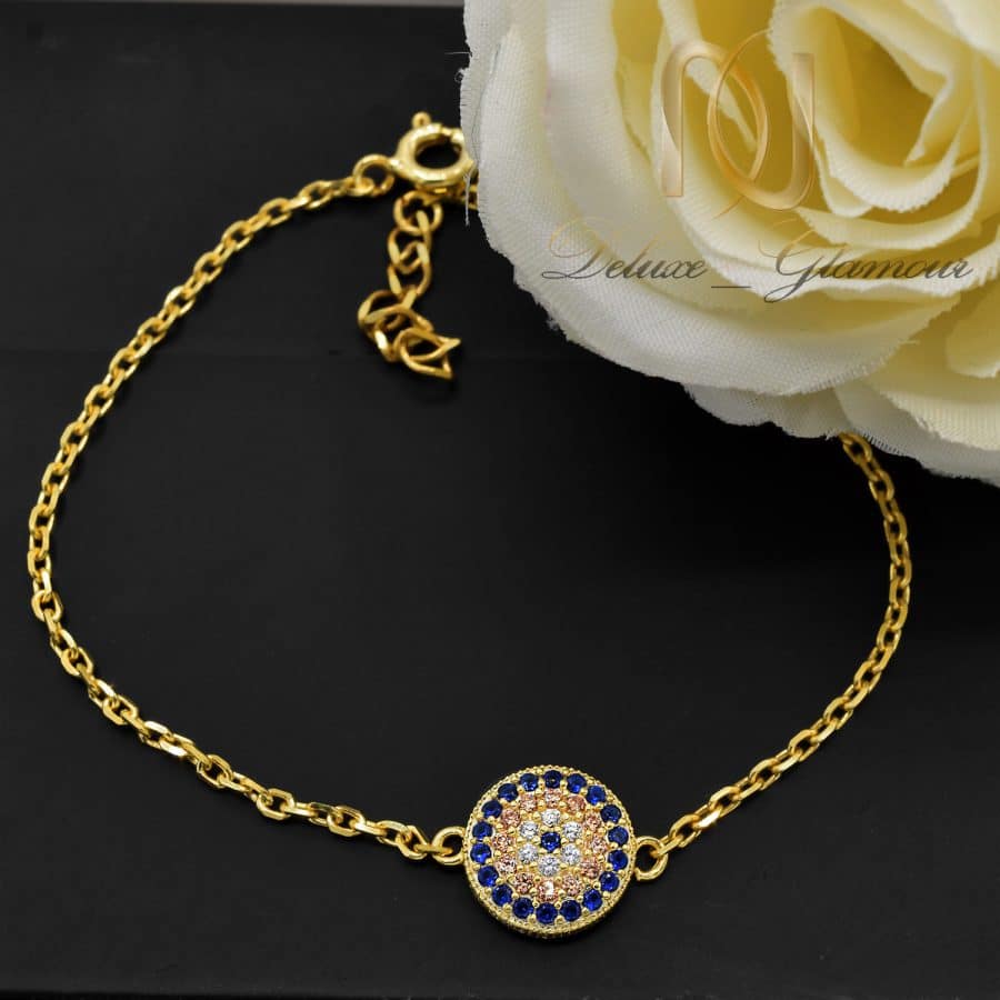 دستبند نقره 925 طرح چشم نظر ds-n727 از سری اکسسوری های و زیورآلات طرح طلا می باشد که ظرافت و زیبایی خاصی دارد و از نقره عیار 925 همراه با روکش آب طلا ساخته شده است. دستبند دخترانه ds-n727 از لحاظ رنگ کاملا مشابه نمونه طلا می باشد و از ثبات رنگ بالایی برخوردار است و می تواند یک گزینه ارزان قیمت و مناسب برای دستبند طلا باشد.