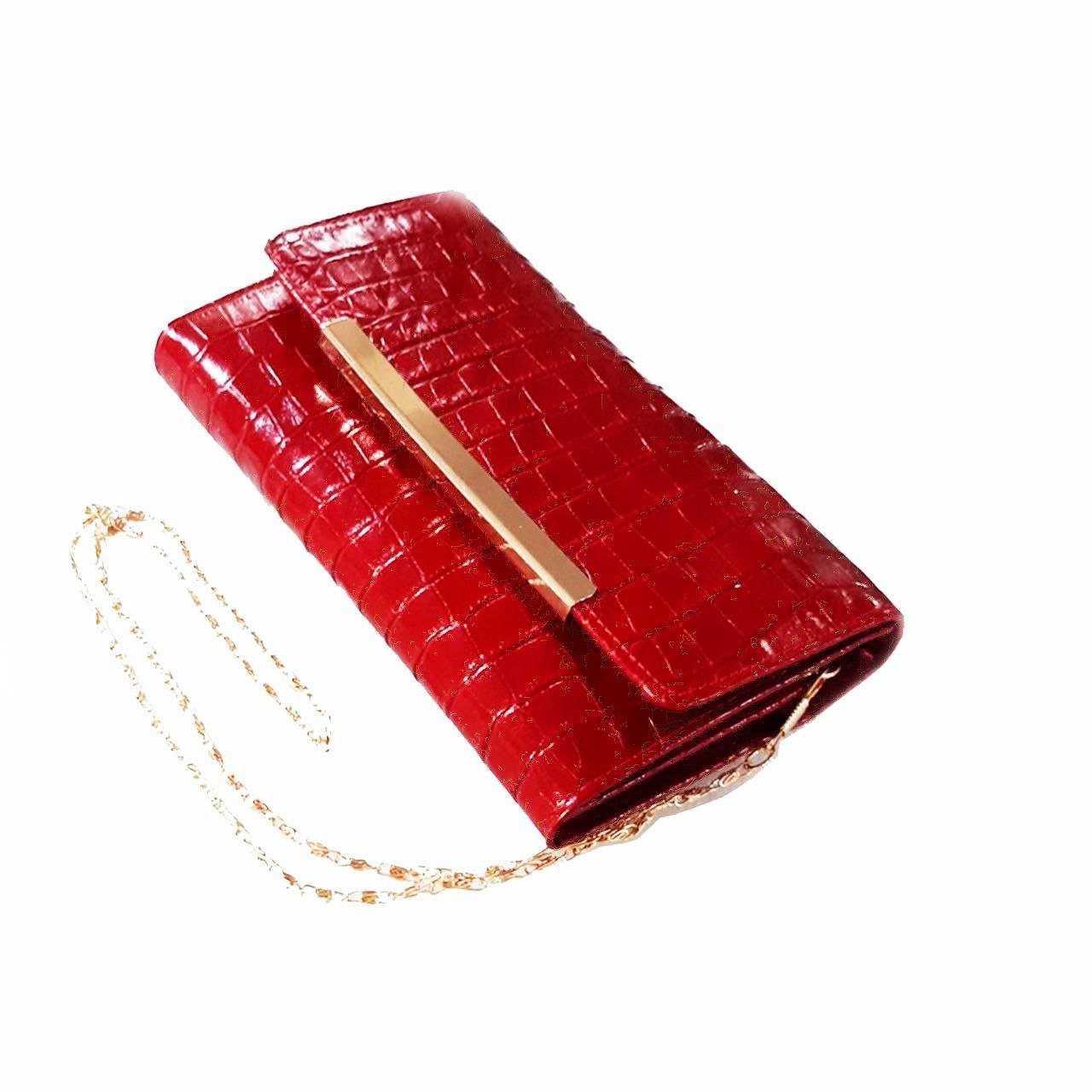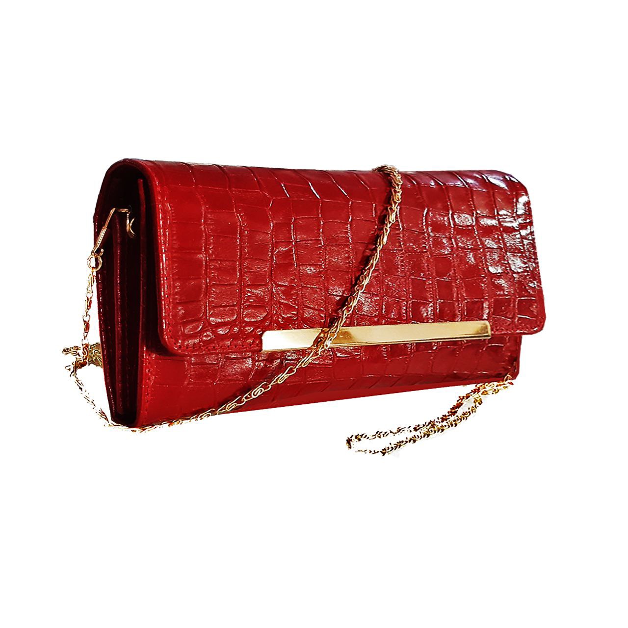 کیف دوشی مجلسی و شب زنانه چرم زرشکی درجه یک لوکس ch-n02