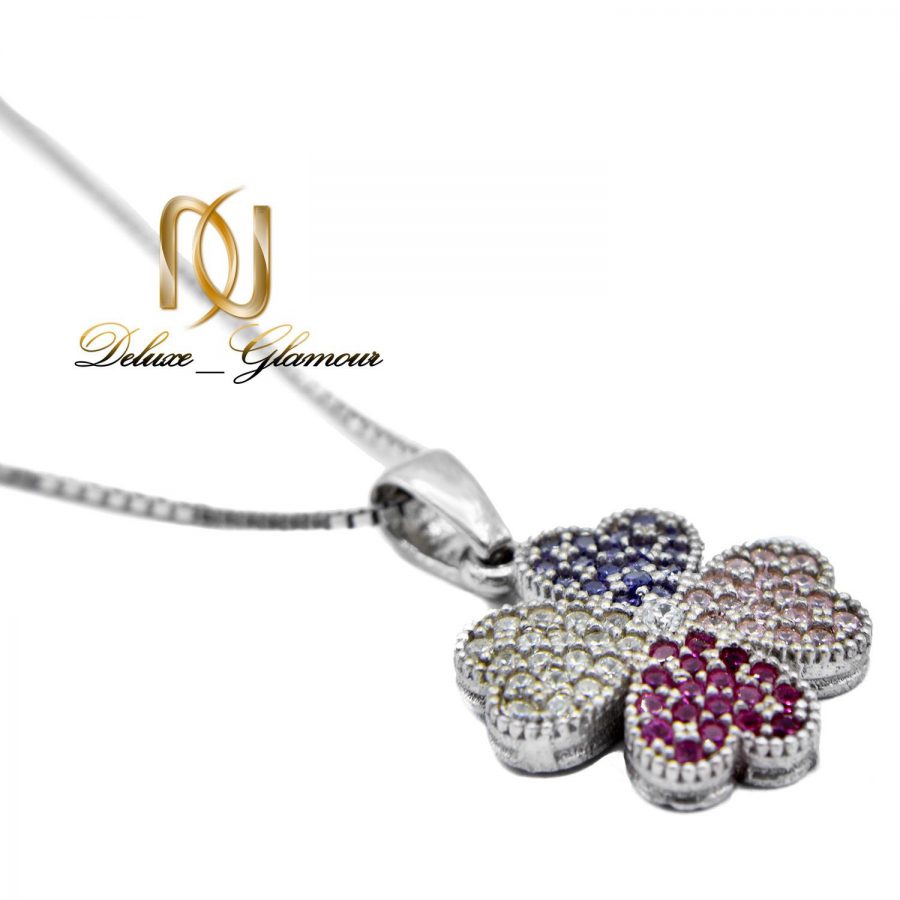 گردنبند دخترانه nw-n567 دارای طول پلاکی 2 سانتی متری است و پلاک به صورت طرح گل می باشد که بر روی هر گلبرگ از نگین های رنگی متفاوت استفاده شده است تا زیبایی چشم نوازی داشته باشد. نگین های استفاده شده در این گردنبند دخترانه از نوع برلیان اتمی می باشند و از شفافیت بالایی برخوردارند. زنجیر قرار گرفته شده در روی گردنبند نیز دارای طول 45 سانتی متری است و قفل آن به صورت حلقه فنری می باشد.