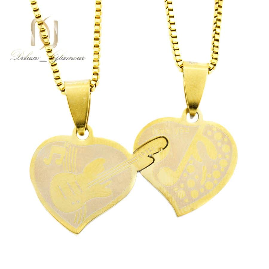 گردنبند ست پازلی استیل قلب و گیتار nw-n695 از سری طرح های پرطرفدار می باشد که می تواند برای زوج های طرفدار موسیقی و آهنگ مناسب باشد. این گردنبند ست زیبا از دو گردنبند مکمل و مجزا تشکیل شده اند که طرح آنها به صورت قلب و گیتار می باشد. این گردنبند ست های زیبا از استیل درجه یک و با کیفیت عیار 316 ساخته شده اند که دارای روکش آب طلا می باشند.