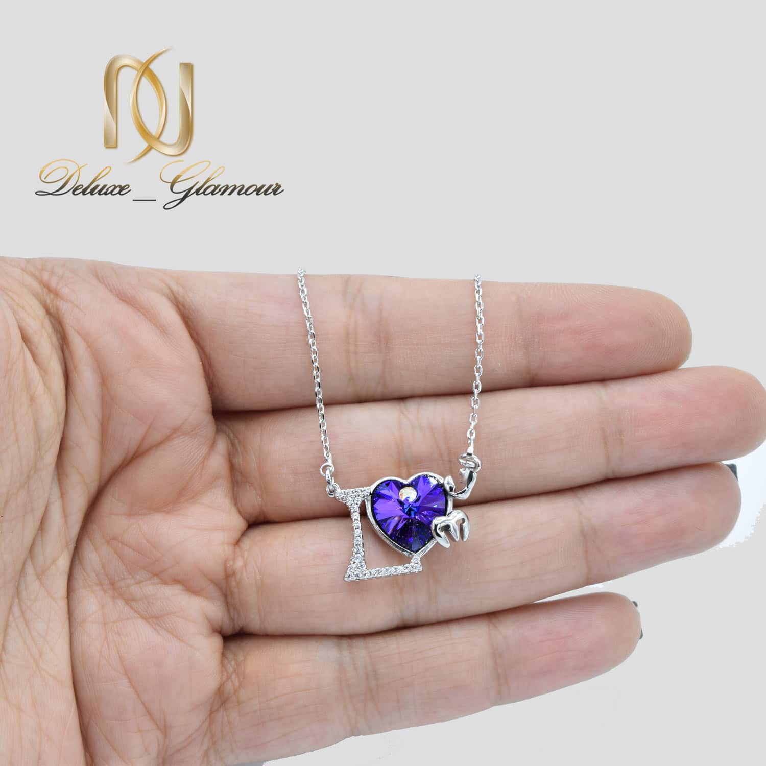 گردنبند سواروسکی دخترانه طرح لاو nw-n713 یکی از خاص ترین و زیباترین مدل های گردنبند دخترانه میباشد که به صورت جواهری ساخته شده است. این گردنبند دارای روگش چندلایه آب طلا سفید است که رنگ آلیاژ فلز مس آن را کاملا مشابه طلا سفید می کند و از سوی دیگر باعث می شود گردنبند بر روی پوست ایجاد حساسیت و خارش نکند.