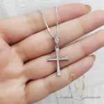 گردنبند صلیب دخترانه نقره 925 اصل nw-n803 یکی از زیباترین و خاص ترین گردنبند های دخترانه و زنانه می باشد که به صورت طرح صلیب می باشد که ظرافت خاصی دارد و برای آبکاری آن از رودیوم استفاده شده است که رنگ فلز نقره را همانند طلا سفید می کند. این گردنبند صلیب جزو ظریف ترین گردنبند های دخترانه و زنانه می باشد که طولی برابر با 3 سانتی متر دارا می باشد که روی پلاک نگین کاری شده است. نگین های استفاده شده روی این پلاک از نوع زیرکونیا می باشند که درخشش بالایی دارند و بدون ریزش نیز هستند.