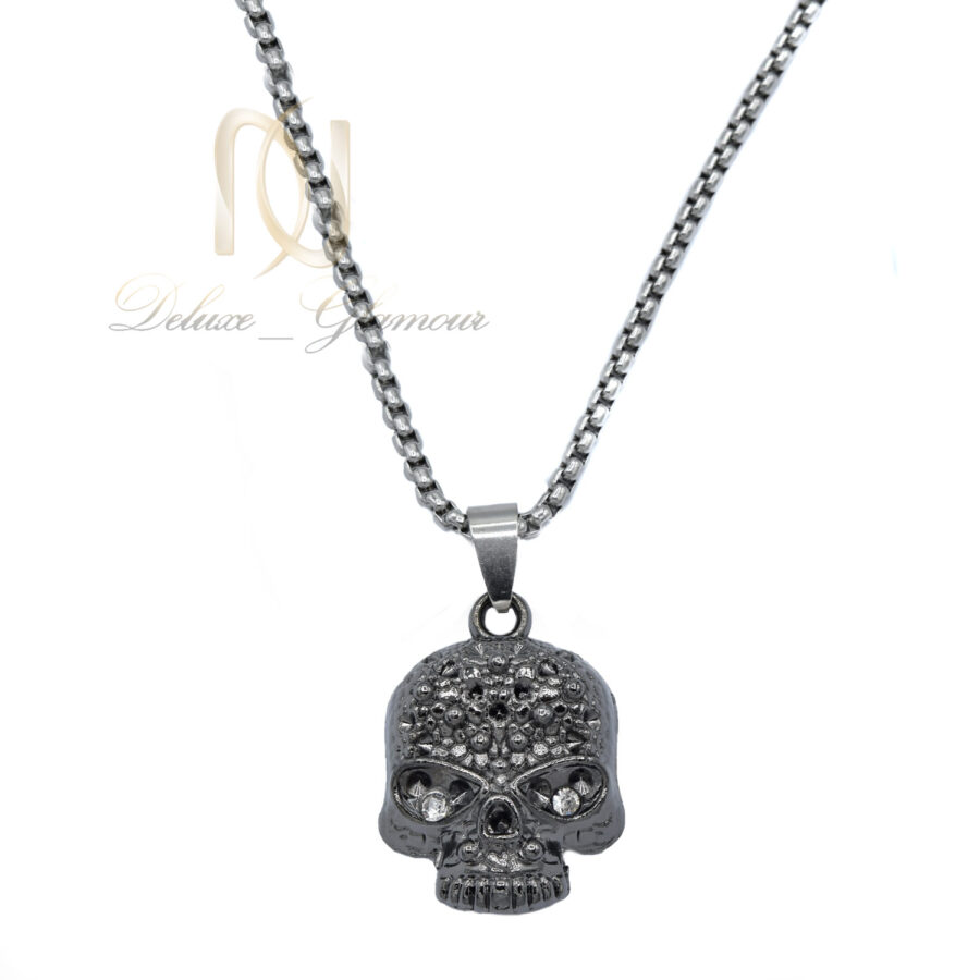گردنبند مردانه اسپرت طرح جمجمه nw-n822 از سری زیورآلات و اکسسوری های مردانه اسپرت و فشن می باشد که از پلاک و زنجیر تشکیل شده است. این گردنبند زیبا به صورت طرح جمجمه ساخته شده است که از آلیاژ استیل ساخته شده است و به رنگ مشکی روشن است که بر روی آن نگین کاری شده است که از نوع زیرکونیا هستند. لازم به ذکر است که طول تقریبی پلاک 3 سانتی متر می باشد.