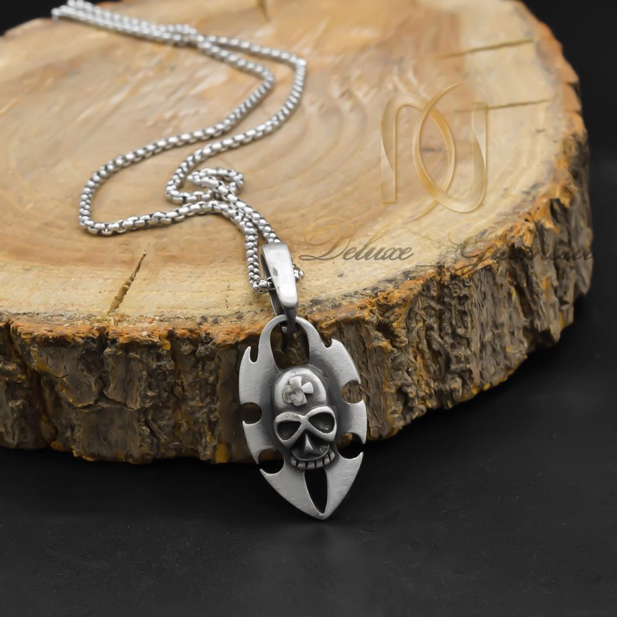 گردنبند مردانه جمجمه استیل ضد زنگ سیاه قلم ne-n37 دارای مینا و سیاه قلم کاری بر روی پلاک می باشد که باعث ایجاد تم مشکی بر روی گردنبند شده است. طول تقریبی پلاک این گردنبند 4 سانتی متر با احتساب سرآویز است که زنجیر قرار گرفته شده روی آن دارای طول 60 سانتی متر و از نوع ماری استیل است که باعث شده گردنبند به صورت رولباسی مورد استفاده قرار گیرد.