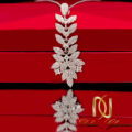 گردنبند نقره زنانه طرح طلا نگین سفید MA-N810 گردنبندی شیک با طراحی خاص گلبرگ میباشد که برروی سطح پلاک آن نگین هایی شفاف و زیبا از جنس زیر کونیای اتمی اصل قرار گرفته است این نگین ها با رنگ سفید کریستالی باعث درخشندگی و جذابیت این گردنبند نقره شده است.جنس این نگین ها کاملا محکم و با دوام است و با ظرافت خاصی برروی گردنبند کار شده اند و بدون ریزش هستند.