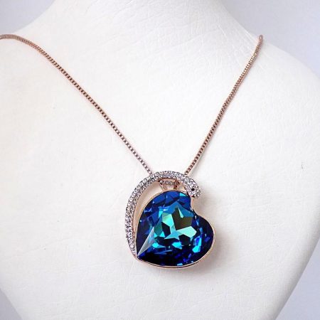 کریستالهای برند سواراسکی به دلیل درخشش زیاد و کیفیت بالا و همچنین زیبایی خیره کننده ای که دارند از محبوبیت بالایی برخوردار هستند که این محبوبیت دور از انتظار هم نیست .گردنبند کد NW-n107،شامل یک کریستال سواروسکی درشت سه بعدی به رنگ آبی می باشد که با تابش اندکی نور طیف گسترده ای از رنگ آبی را به نمایش می گذارد.در قسمت بالایی پلاک این گردنبند طرحی به شکل سر یک پرنده به چشم میخورد که تماما پوشیده شده از کریستال می باشد.