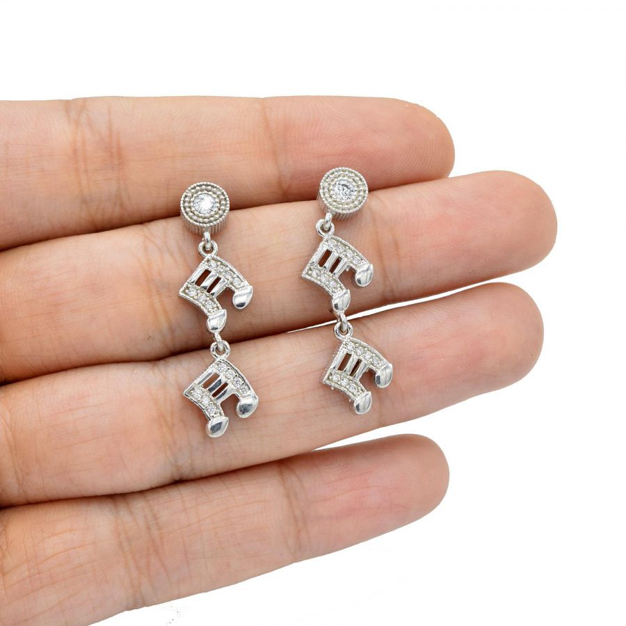 گوشواره نقره er-n200 به صورت آویزی می باشد و قفل آن از سری قفل های میخی می باشد. طول تقریبا گوشواره نت موسیقی تقریبا 3 سانتی متر می باشد و بر روی آن از نگین های کریستالی سفید رنگی استفاده شده است که از نوع نگین های برلیان اتمی میباشند. گوشواره آویزی er-n200 گزینه مناسبی برای افرادی است که موزیسین هستند و یا به آهنگ علاقه دارند.