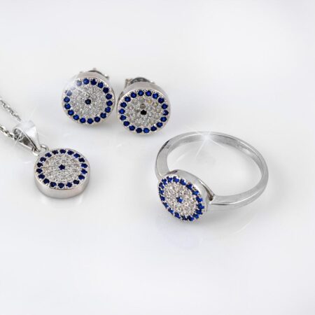 سرویس ظریف نقره چشم نظر با نگین برلیان اتمی se-n136